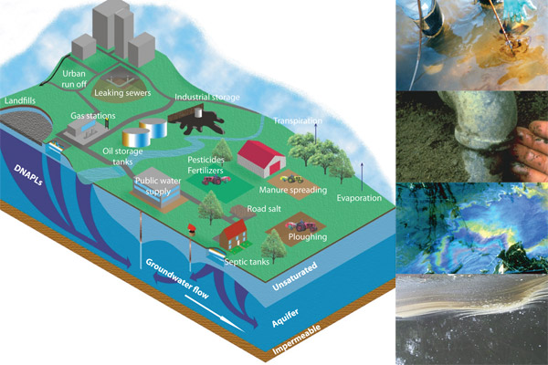 named DNAPLs (Dense NonAqueous Phase Liquids), leached from industrial facilities.